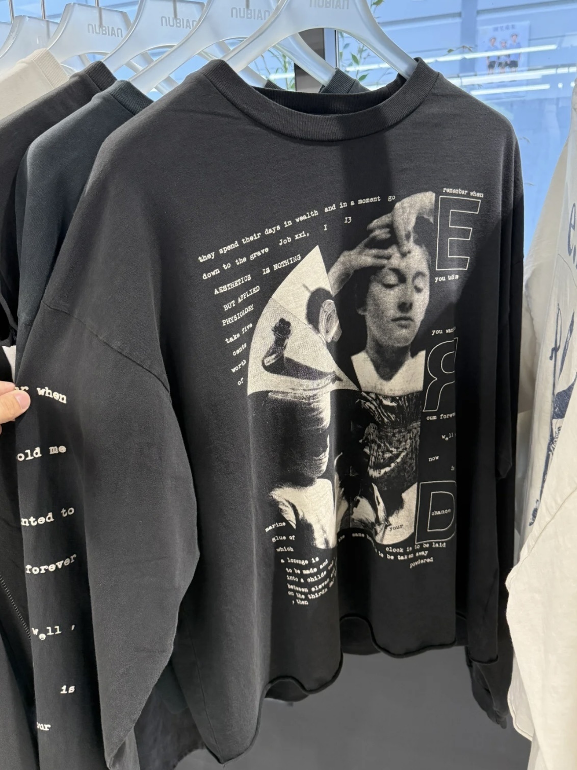Various Graphic Print Long Sleeve Sweatshirts in Black, White, and Grey